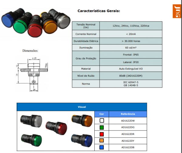 Os sinaleiros Led AD16 da JNG foram desenvolvidos, para atender as necessidades industriais de sinalização de operações em painéis elétricos, por isso conta com Leds de alta luminosidade.